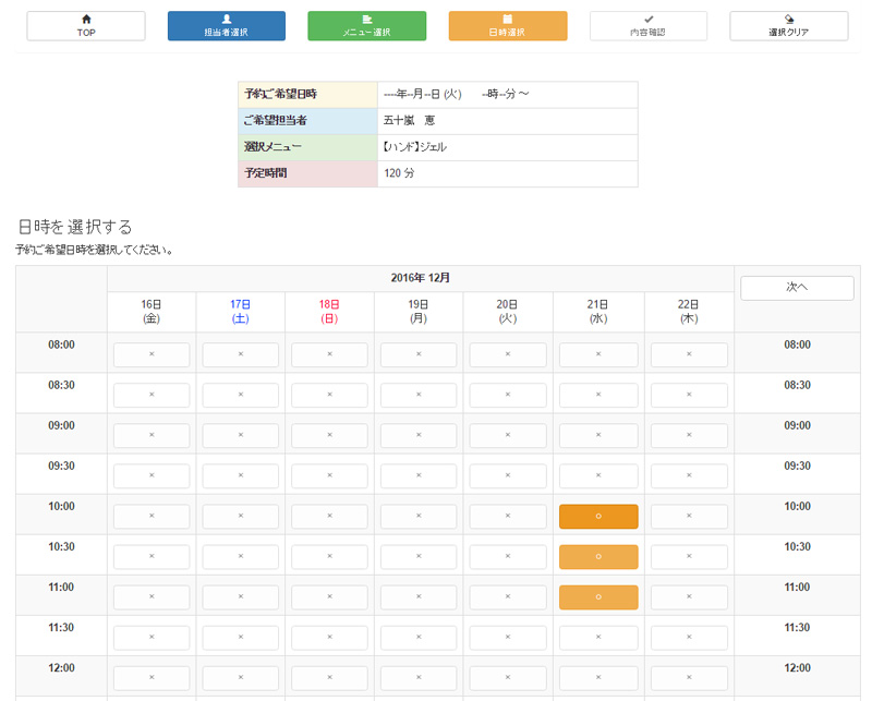 ご予約日時を選択する